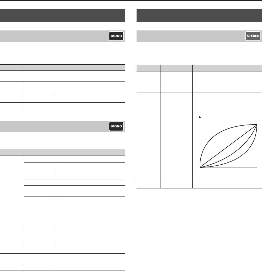 EFFECT LEVEL 0–100 Adjusts the volume of the eect sound.