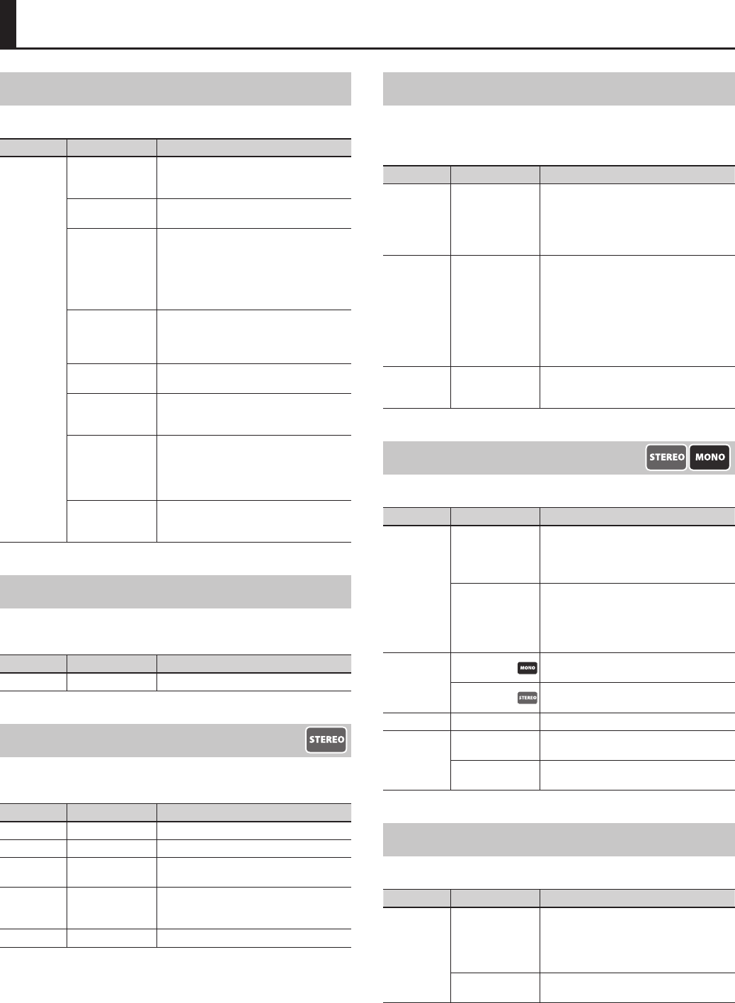 INPUT LEVEL -20–+20 dB Adjusts the guitar input level.