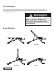 Assembly Instructions STEP 1: Attaching Front and Rear Stabilizers 1 2 11 15 3 Parts • Bench Frame (#1) • Rear Stabilizer (#2) • Front Stabilizer (#3) Hardware • 3/8 x 3 inch Bolts (#12) • 3/8 x 1 inch Bolts (#11) • 3/8 Washers (#15) • 3/8 Nuts (#13) 13 Qty 2 3 7 2 15 12 Tools • 7/32 Allen Wrench 1-1 A ttach the Front Stabilizer (3) to the Bench Frame (1) using the hardware shown. 1-2 Tighten hardware. 1-3 A ttach the Rear Stabilizer (2) to the Bench Frame (1) using the hardware shown.