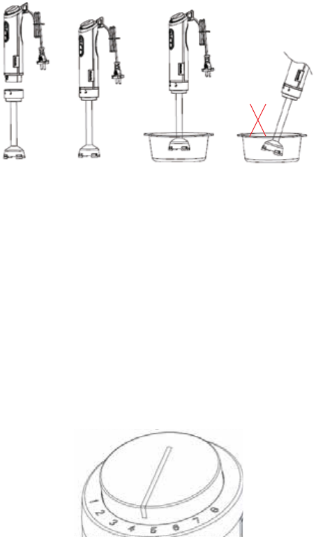 2. Führen Sie den Stabmixer in den Behälter und drücken Sie dann die