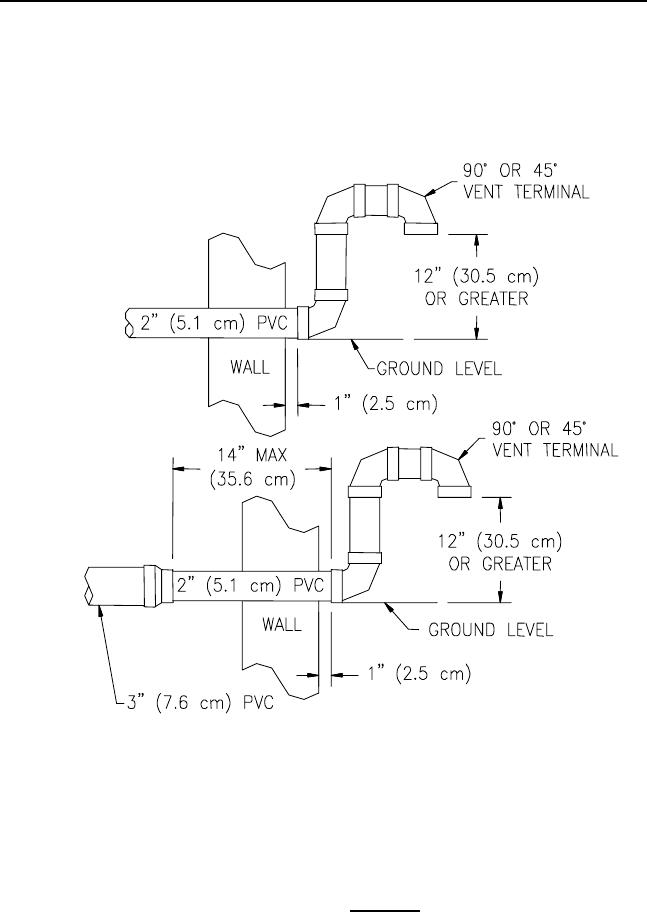 for maximum venting lengths using 2” (5.1 cm) PVC or Table 10 for maximum