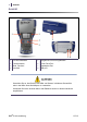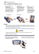 4 Einrichten des Druckers Laden desBMP41-BP-NiMHAkku-Packs 1. Auf der Rückseite des Druckers den Freigaberiegel der Tür nach unten ziehen und die Tür des Akkugehäuses nach oben und außen schwenken. (Die Tür kann ganz entfernt werden.) 2. Während das Akkuetikett nach außen weist, die Akkustifte in die Stiftschlitze oben am Gehäuse einführen; dann den Akku nach unten in Position kippen. 3.