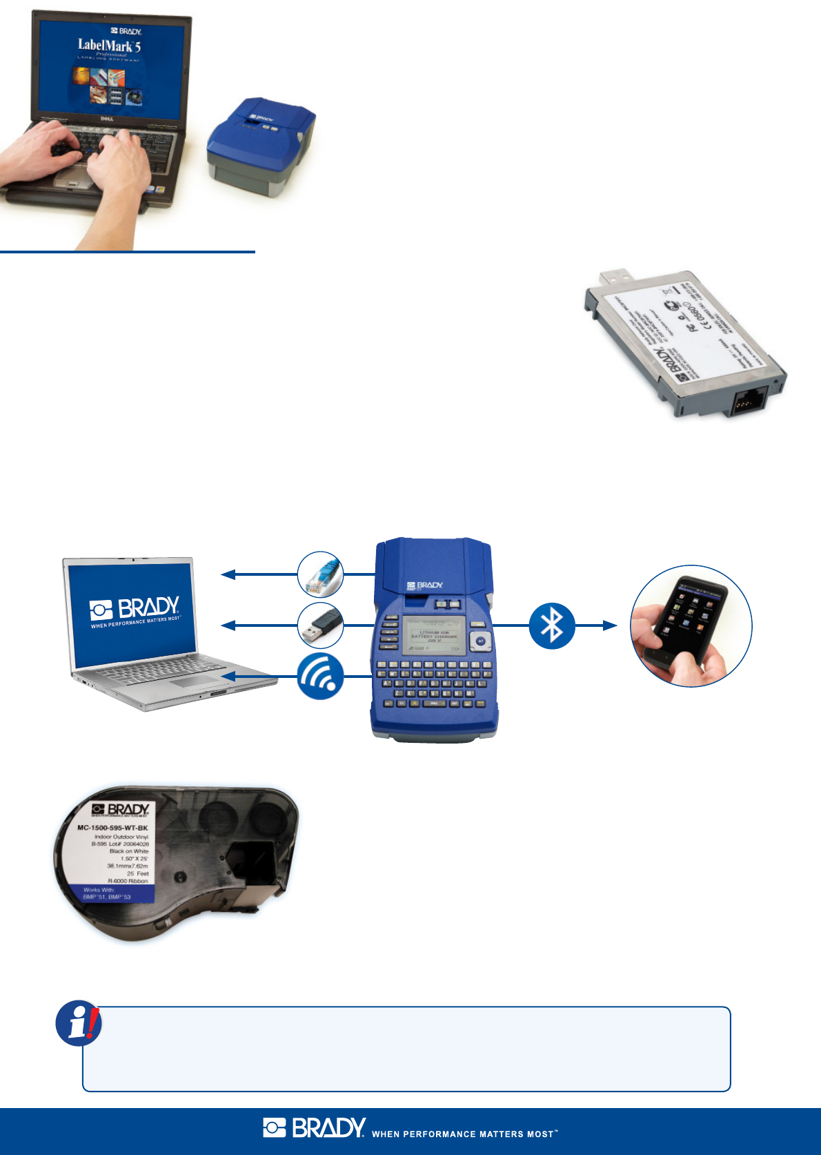 Bluetooth, która współpracuje wyłącznie z aplikacją Brady Mobile zainstalowaną na smartfonie