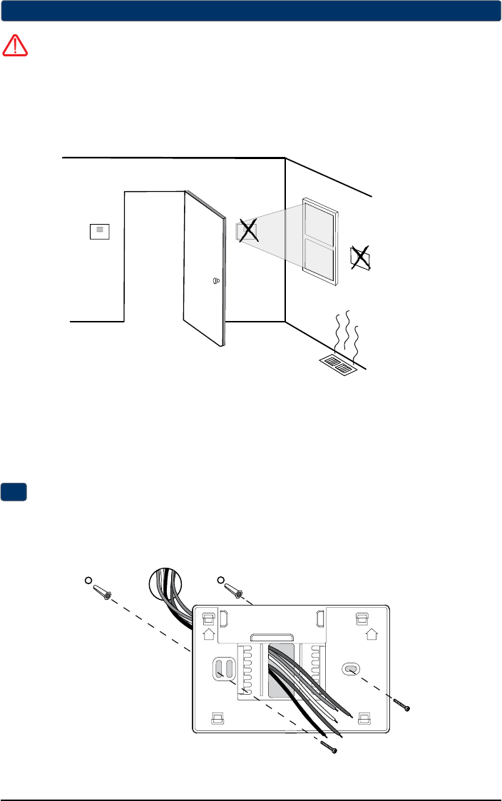 Avoidinstallationinlocationswherethethermostatcanbeaffectedbydrafts,deadairspots,hotorcoldair