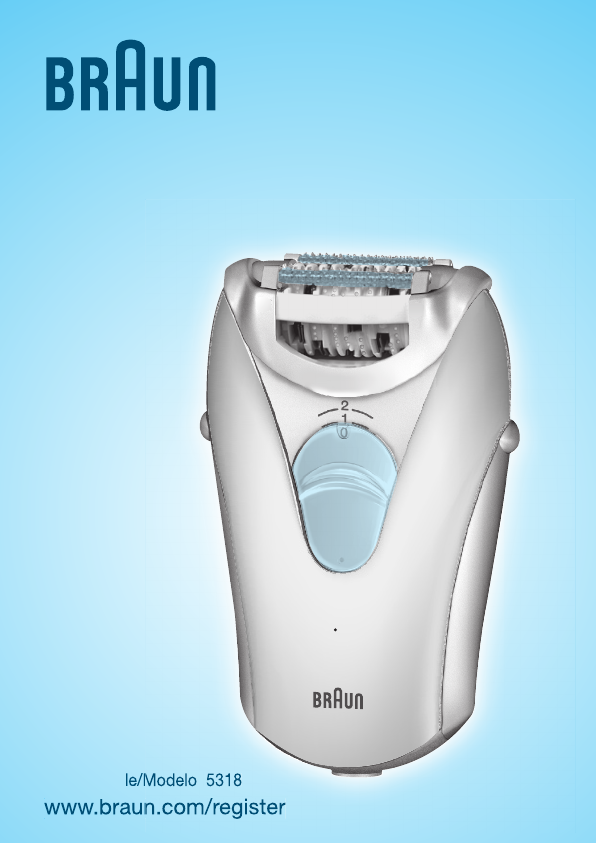 5368398_SE3170_S2 Seite 1 Montag, 14. Januar 2008 9:27 09 English 6 Français 13 Español 19 Thank you for purchasing a Braun product. Our products are designed to meet the highest standards of quality, functionality and design. We hope you are completely satisfied with your new Silk·épil. If you have any questions, please call: US residents 1-800-BRAUN-11 1-800-272-8611 Canadian residents 1-800-387-6657 Merci d’avoir fait l’achat d’un produit Braun.
