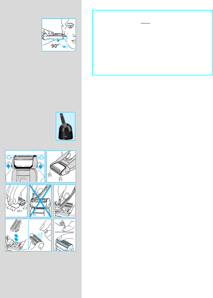 Houdt het scheerapparaat altijd loodrecht (90°) op