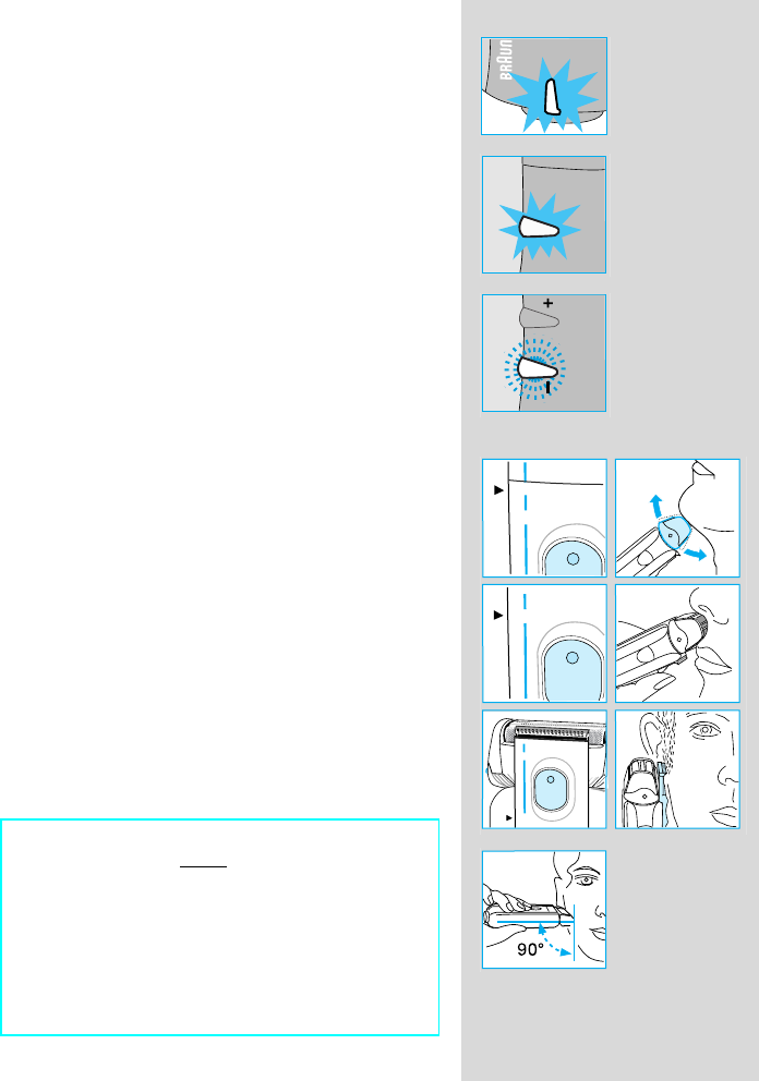 Pidä parranajokonetta oikeassa kulmassa (90°)