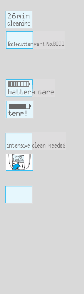 10. Info nøkkel, trykk en gang: varighet av siste barbering.