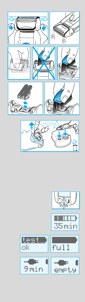4. Verbleibende Rasierzeit / Rasierer muss geladen
