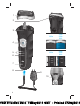 Descrizione 1 2 3 4 5 6 7 8 9 10 Lamina e Blocco coltelli Tagliabasette Tasto settaggio di precisione * Tasto accensione/spegnimento LED di ricarica (verde) Indicatore di scarsa carica (rosso) Indicatore di sostituzione parti di ricambio Presa per il cavo di rete Speciale cavo di rete Cappuccio di protezione * non con tutti i modelli Carica del rasoio La temperatura ambientale consigliata per la ricarica è compresa tra 5 °C e 35 °C.