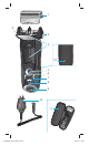 lo ck tr Utilisation Appuyez sur l’interrupteur marche/arrêt 5 pour mettre en marche le rasoir : • La tête pivotante du rasoir et les grilles flexibles s'adaptent automatiquement aux contours de votre visage. + k loc 2 trimmer 1 lock • Pour raser les zones difficiles à atteindre (ex. : sous le nez), faites glisser le « lock » de verrouillage de la tête du rasoir 3 vers l’arrière pour bloquer la tête pivotante en position inclinée.