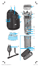 Afeitadora 8 Lámina y bloque de cuchillas 9 Botón para liberar la lámina y el bloque de cuchillas («release») 0 Botón para bloquear el movimiento del cabezal («lock«) q Corta-patillas w Botón de encendido y apagado e (–) botón para la opción sensibles r (+) botón para la opción intensivo t Botón de re-inicio z Pantalla digital de la afeitadora u Conectores del la afeitadora con el centro Clean&Renew i Clavija de entrada del cable de conexión a la red eléctrica con la afeitadora o Estuche de viaje p Cable de