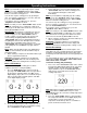 Troubleshooting PROBLEM POSSIBLE CAUSE POSSIBLE SOLUTION Oven will not start 1. Electrical cord is not plugged in. 2. Door is open. 3. Wrong operation is set. 1. Plug into the outlet. 2. Close the door and try again. 3. Check instructions. Arcing or sparking 1. Materials to be avoided in microwave oven were used. 2. The oven was operated when empty. 3. Spilled food remains in the cavity. 1. Use microwave-safe cookware only. 2. Do not operate with oven empty. 3. Clean cavity with wet towel.