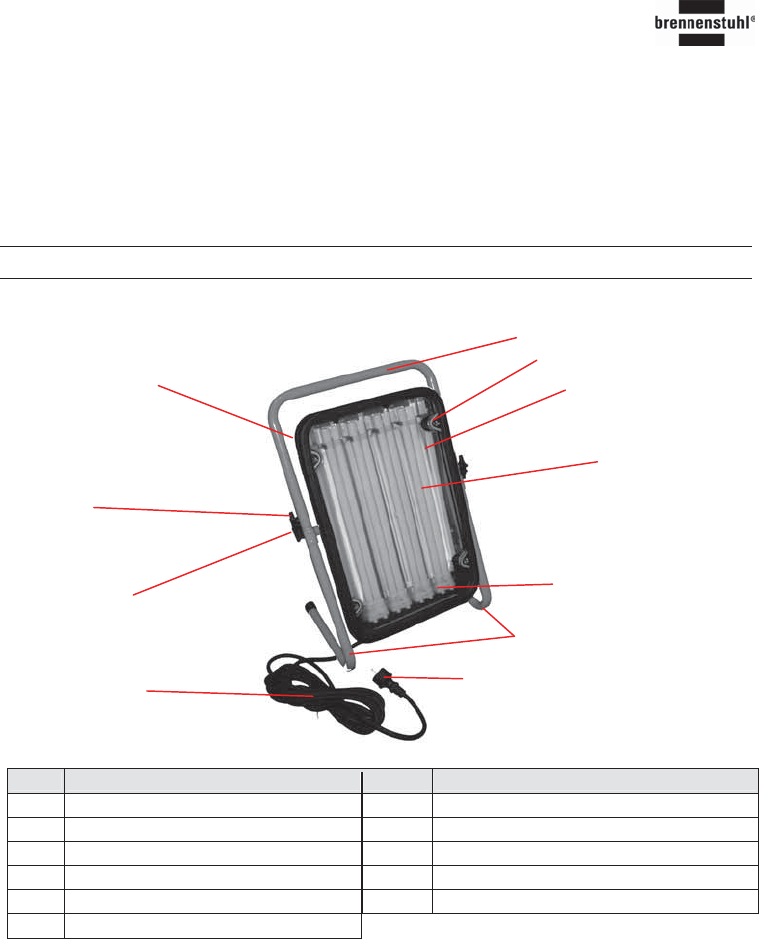 - Zum Wechseln der Leuchtmittel muss die Arbeitsleuchte von der Netzspannung getrennt werden.