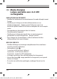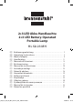 2+3 LED Battery-Operated Portable Lamp Specifications: LEDs: Flux: Battery: Power adapter: Car charger adapter: Operating time: Charging time: Protection class: Temperature range: Operating Instructions D F ront 2x, head 3x Front 78 lm, head 12 lm Integrated, Li-ion 3.7 V / 650 mAh Input voltage: 100 – 240 V AC, 50/60 Hz, 200 mA; output voltage: 5.0 V DC, 1 A Input voltage: 12 – 24 V DC; output voltage: 5.0 V DC, 1000 mA Front 2.5 hrs, head 10.5 hrs 1.