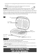 Cleaning Your Indoor Electric Panini Maker & Grill: WARNING: Always unplug the product and allow it to cool before cleaning or storing. NOTICE: Never submerge or add water to the grill. • Wipe Grill Plates with a paper towel first to remove drippings. Removable Drip Tray can be emptied and cleaned under running water with mild dish soap. After drying return to its place on the appliance. • Use a damp sponge with a small amount of nonabrasive soap to gently scrub grilling surface.