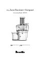 Contents 2 8 10 11 13 14 16 18 19 Breville recommends safety first Components Assembly Functions Care & Cleaning Tips Fruit and Vegetable Facts Troubleshooting French BREVILLE RECOMMENDS SAFETY FIRST At Breville we are very safety conscious. We design and manufacture consumer products with the safety of you, our valued customer, foremost in mind. In addition we ask that you exercise a degree of care when using any electrical appliance and adhere to the following precautions.