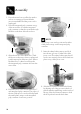 Assemblage 1. Placez le socle motorisé sur une surface plane et sèche, comme un comptoir. Assurez-vous que l’extracteur est éteint (OFF) et débranché de la prise murale. 2. Déposez le contenant à pulpe intégré sur le dessus du socle motorisé. Installez-le de façon à ce que le bec verseur s’insère dans le trou sur le devant du socle motorisé. NOTE Le couvercle de l’extracteur peut être placé d’un côté ou de l’autre des ailes du contenant à pulpe intégré. 3.
