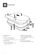 Composants A B E F H G C A. Poignée de la plaque supérieure B. Plaque supérieure C. Plaques de cuisson lisses antiadhésives Pour une croûte grillée croustillante. Les coins de la plaque inférieure se nettoient facilement. D. Interrupteur E. Voyants 'Marche' et 'Prêt' Indiquent quand le presse-sandwich se réchauffe ou est prêt à être utilisé. 16 I D F. Clip de réglage de la hauteur Avec 3 réglages pour les sandwichs ouverts. CRUSH CONTROL et position de verrouillage pour rangement vertical. G.