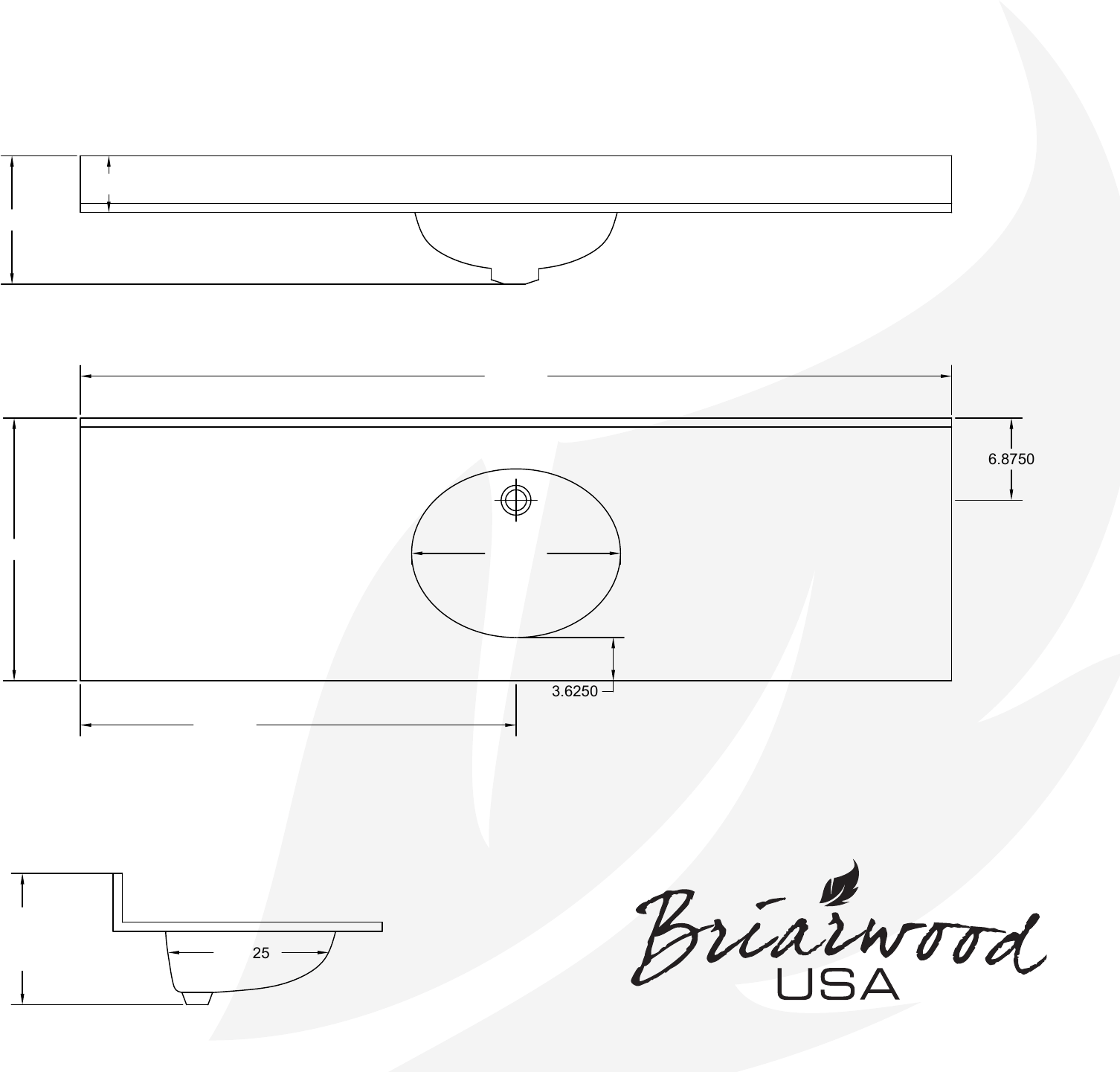 Vanity Top: 73 X 22 SB 4.7500 10.7500 73.0000 6.8750 DRAIN CENTER 22.0000 17.5000 DRAIN CENTER 36.5000 10.7500 ALL DIMENSIONS ARE NOMINAL 14.125 3.