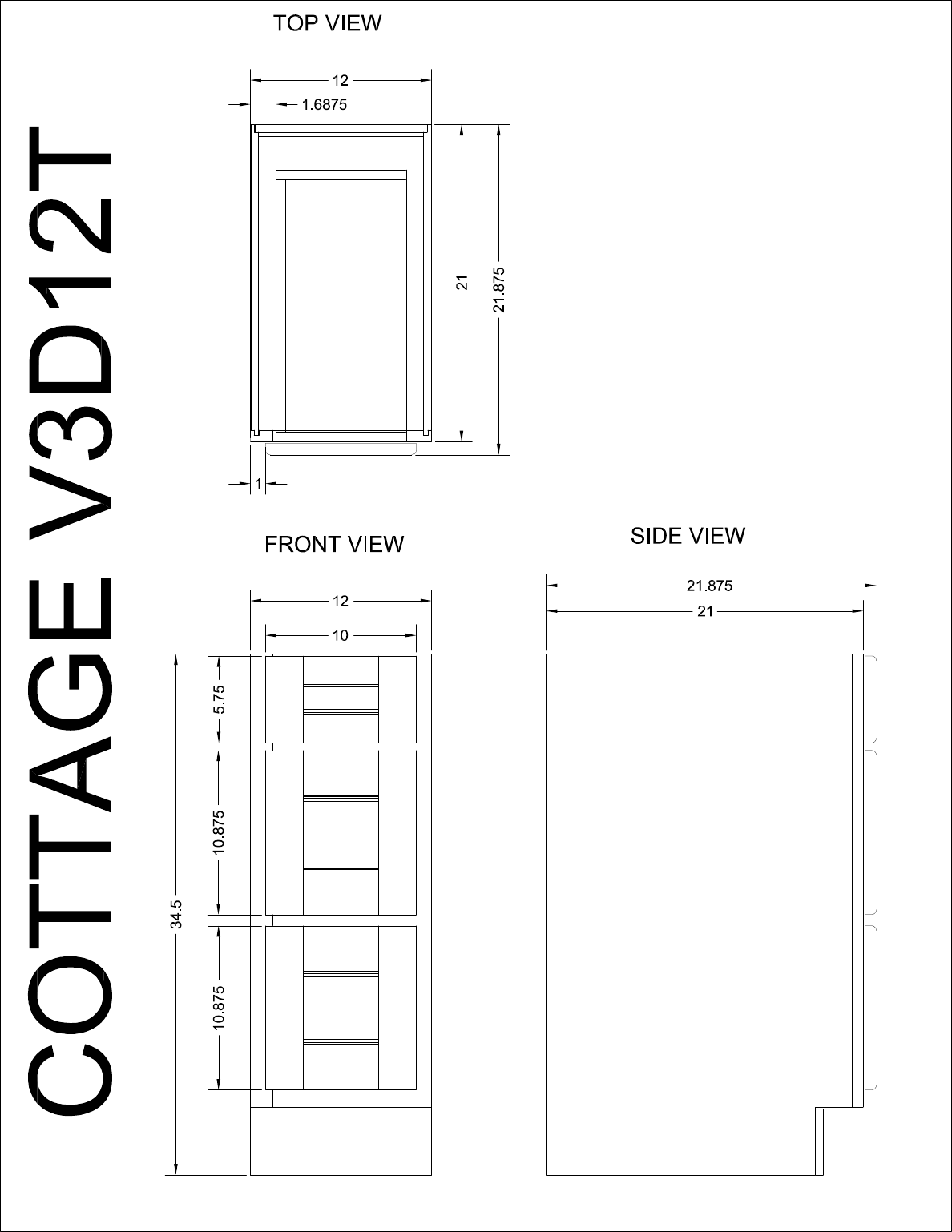 Cottage 12"W x 21"D x 34-1/2"H Glacier Bathroom Vanity Cabinet