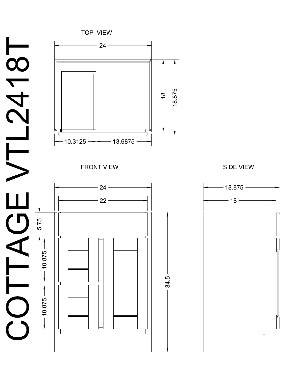 Cottage 24"W x 18"D x 34-1/2"H Glacier Bathroom Vanity Cabinet