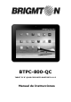 DECLARACIÓN DE CONFORMIDAD I.R.P., S.L. declara bajo su responsabilidad que el aparato indicado cumple los requisitos de las siguientes directivas: DIRECTIVAS EMC EN60950-1:2006/A11:2009/A1:2010 EN 62311: 2088 EN 301 489-1 V1.9.2:2011-09 EN 301 489-17 V2.1.1:2009-05 EN 300 328 V1.7.1: 2006-10 ETSI EN 301 489-1 V1.9.2(2011-09) ETSI EN 301 489-17 V2.1.1(2009-05) Descripción del aparato: Modelo BRIGMTON BTPC-800-QC Dispositivo de conexión a internet Importador: I.R.P., S.L. Dirección: Avda.