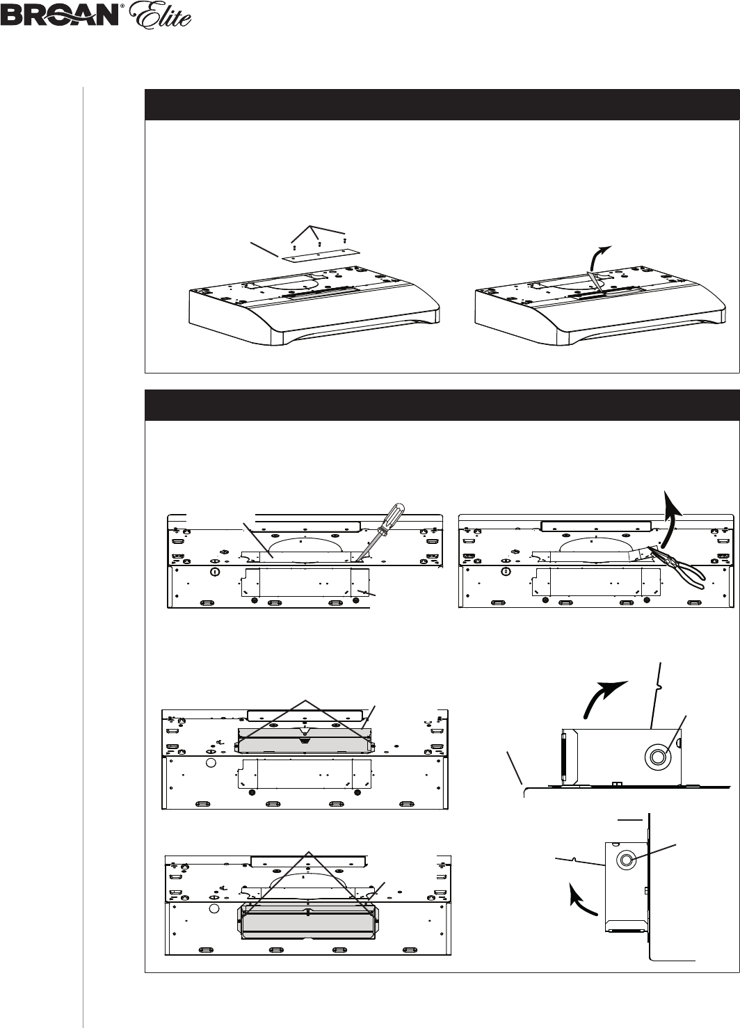 9 ] Attach 3¼” x 14” Damper Assembly on top OR back of hood over the knockout opening.