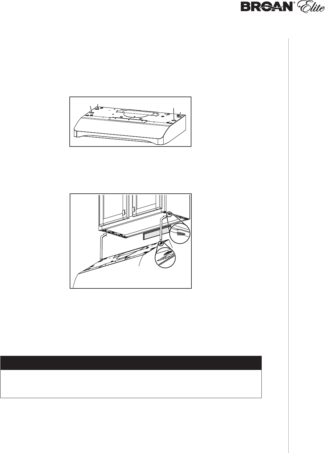 on front C and D on illustration below); these holes allow the range hood to hang on the