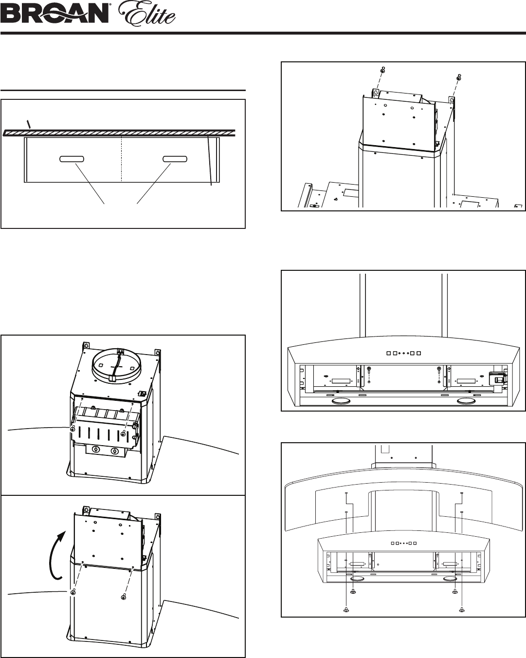 de la hotte. Fixez le capot avec quatre (4) longues vis de 0,47 x