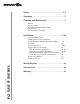 Seguridad . . . . . . . . . . . . . . . . . . . . . . . . . . . . . . 3-4 Funcionamiento . . . . . . . . . . . . . . . . . . . . . . . . . . 5 Limpieza y mantenimiento . . . . . . . . . . . . . . . . . 6 Motores Filtros de grasa Filtros de recirculación Ruedas del ventiladores Limpieza del acero inoxidable Instalación . . . . . . . . . . . . . . . . . . . . . . . . . . . . 7-22 Herramientas y accesorios recomendados para la instalación . . . . . . . . . . . . . . . . . . . . . . .
