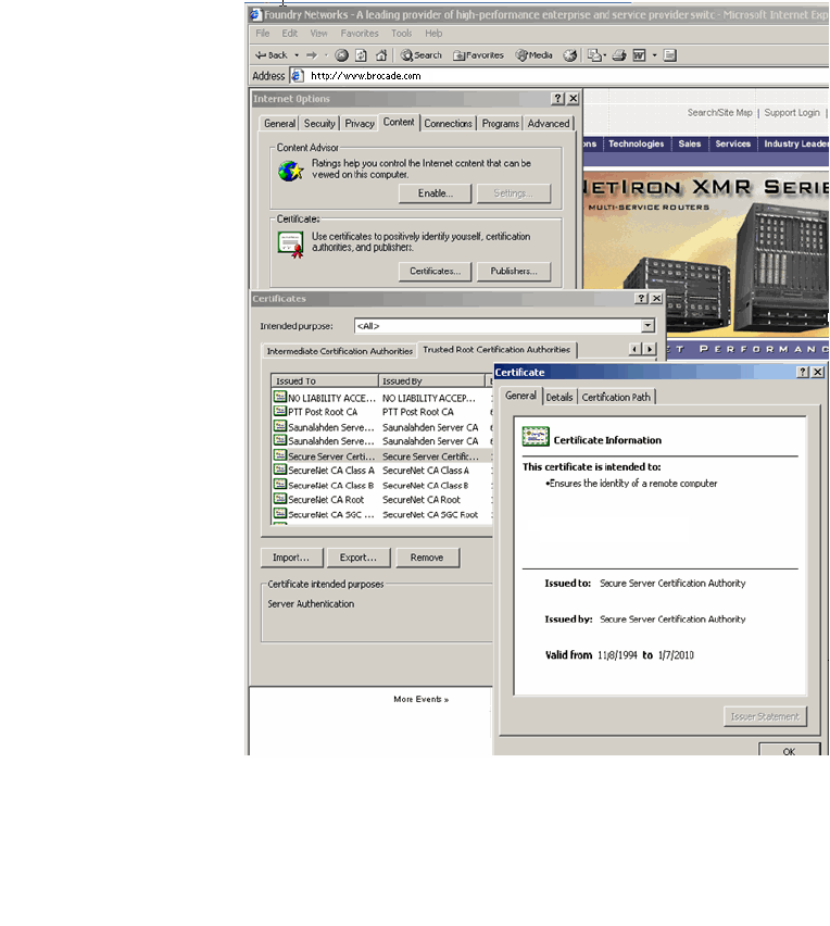 corresponding CA's certificate. When you open the trusted root CA page in Internet Explorer, you