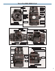 5. Film Loading A. To open the back cover, squeeze the left and right back cover release buttons, in the arrow-indicated directions, at the same time and the back cover will open. B. The film holder can be taken out for film loading upon opening the back cover. C. There are two spool holders on the film holder. The top one is for the fresh film spool while the bottom one is for the empty take-up spool.