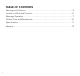 Table of contents Warnings and Cautions . . . . . . . . . . . . . . . . . . . . . . . . . . . . . . . . . . . . . . . . . . . . . . . . . . . . 2 Location of Parts and Controls . . . . . . . . . . . . . . . . . . . . . . . . . . . . . . . . . . . . . . . . . . . . . 6 Massager Operation . . . . . . . . . . . . . . . . . . . . . . . . . . . . . . . . . . . . . . . . . . . .