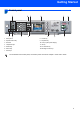 Getting Started Control panel 1 Microphone 8 On/Off key 2 Speaker Phone key 9 Stop/Exit key 3 Dial Pad 10 LCD (Liquid Crystal Display) 4 Telephone keys 11 Ink key 5 Mode keys 12 Fax Preview key 6 Menu keys 13 Message Center keys 7 Start keys For the details of the control panel, see Control panel overview in Chapter 1 of the User’s Guide.