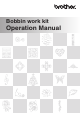 BEFORE YOU START Thank you for choosing our product. This manual describes the procedures for sewing bobbin work. For specific details on operating the machine, refer to the Operation Manual provided with your machine. The images and patterns used in this manual are for illustration purposes and may differ from the actual items. This is a kit used for sewing (utility stitches, decorative stitches or free-motion sewing). This kit cannot be used for machine embroidering. CONTENTS ABOUT BOBBIN WORK ..........