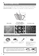 PREPARING FOR BOBBIN WORK Required Materials ■ Bobbin case and bobbin cover Note • Do not use thread heavier than No.5 hand embroidery thread. • Some threads may not be appropriate for bobbin work. Be sure to sew trial stitches before sewing on your project. ■ Upper thread a Bobbin case (gray) This bobbin case is only for bobbin work. The bobbin case will allow you to sew with thick thread or narrow ribbon that cannot be inserted through the eye of the needle.