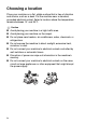 Choosing a location Place your machine on a flat, stable surface that is free of vibration and shocks, such as a desk. Put the machine near a standard, grounded electrical socket. Select a location where the temperature remains between 10° and 35°C. Caution ■ Avoid placing your machine in a high-traffic area. ■ Avoid placing your machine on the carpet. ■ Do not place near heaters, air conditioners, water, chemicals, or refrigerators.
