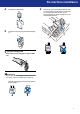 Stap 1 7 De machine installeren Til het scannerdeksel op om de vergrendeling los te maken. Druk de steun van het scannerdeksel voorzichtig naar beneden en sluit het scannerdeksel. Opmerking Als op het LCD-scherm de melding Installeer XXXX wordt weergegeven nadat u de inktcartridges hebt geïnstalleerd, dient u te controleren of de cartridges juist zijn geïnstalleerd. De machine zal het inktbuizensysteem reinigen voor het eerste gebruik.