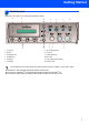 Getting Started Control panel (For DCP-115C, DCP-117C, DCP-120C and DCP-315CN) 12 11 10 1 2 9 3 8 7 4 1 Copy keys 7 Ink management key 2 Set key 8 Scan key 3 Navigation keys 9 PhotoCapture key 4 Stop/Exit key 10 Menu key 5 Start keys 11 LCD (Liquid Crystal Display) 6 On/Off key 12 Warning LED 6 5 For the details of the control panel, see Control panel overview in Chapter 1 of the User’s Guide. Illustrations in this Quick Setup Guide are based on DCP-120C.