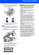 Setting Up the Machine 6 Press firmly down on the ink cartridge until the hook snaps over it, taking care to match the slot colour (1) with the cartridge colour (2), as shown in the diagram below. 2 1 OK 7 Lift the scanner cover to release the lock. Gently push the scanner cover support down and close the scanner cover. Note If the LCD shows Install XXXX after you install the ink cartridges, check that the ink cartridges are installed properly.