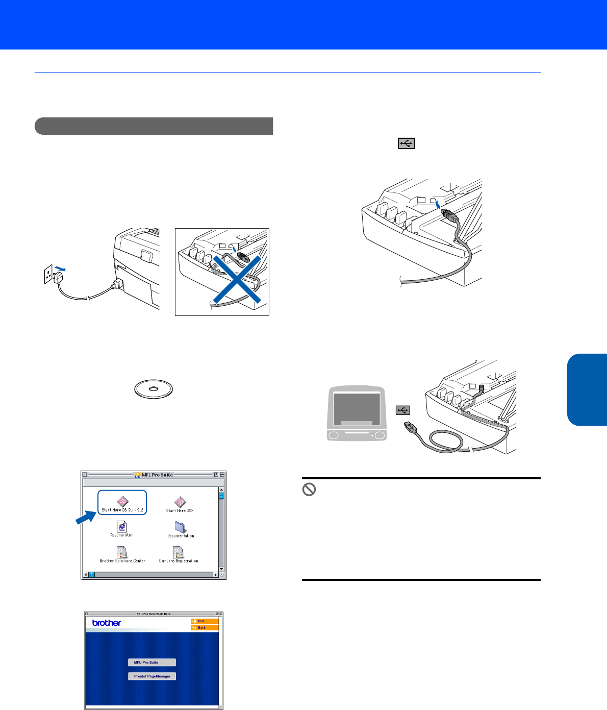 • DO NOT connect the machine to a USB port on