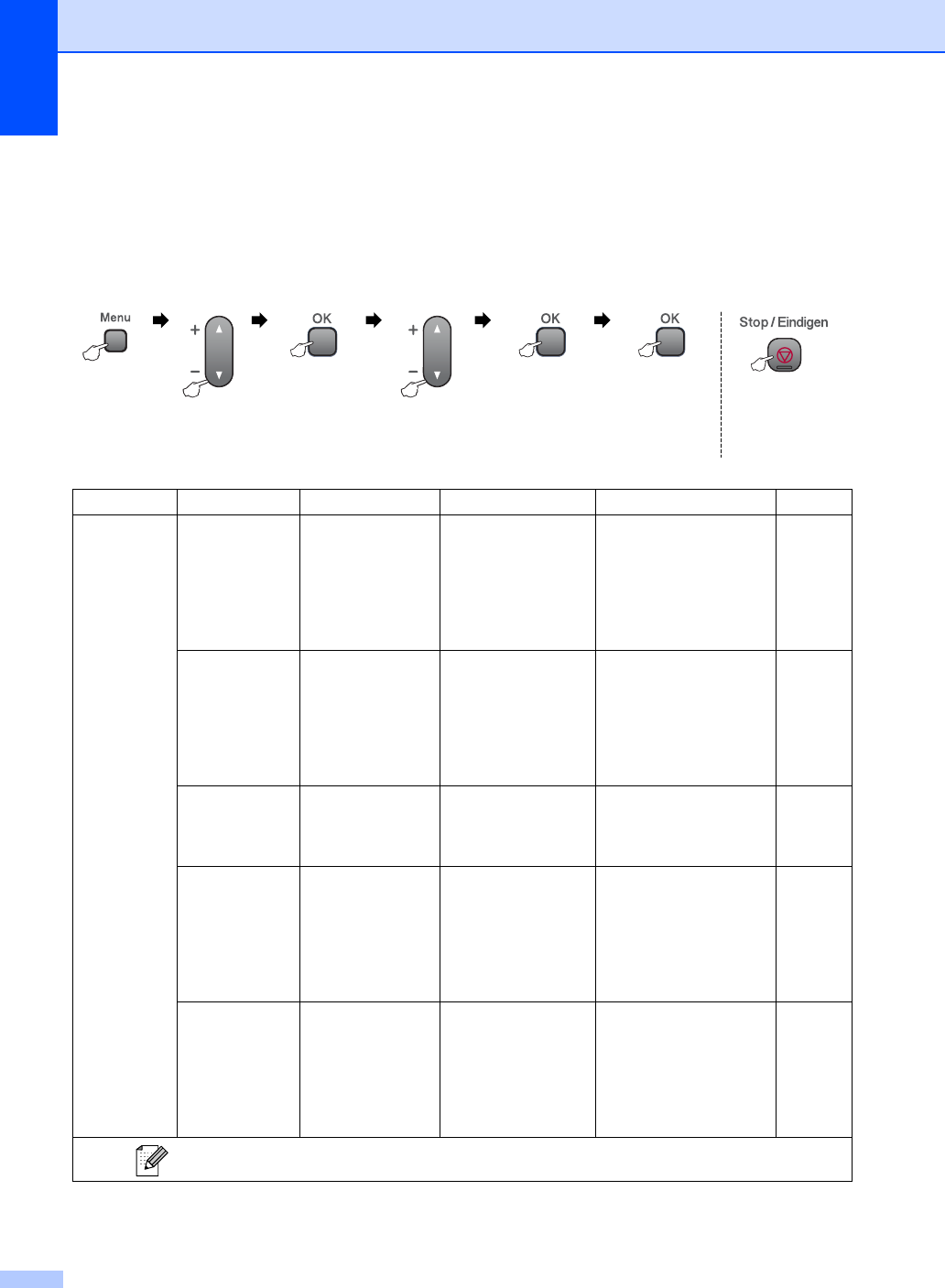machine tegenkomt. De fabrieksinstellingen zijn vetgedrukt en met een sterretje weergegeven.