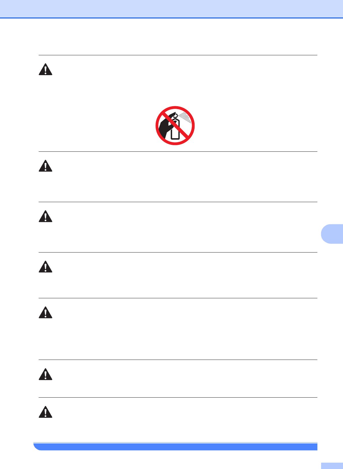 Gebruik GEEN ontvlambare stoffen en geen spray, vloeistof of spuitbussen om de binnenkant