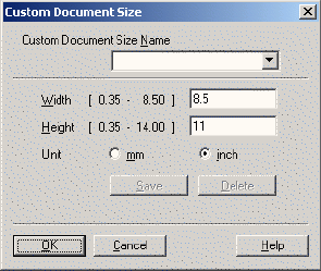 If you selected Custom as the size, The Custom Document Size