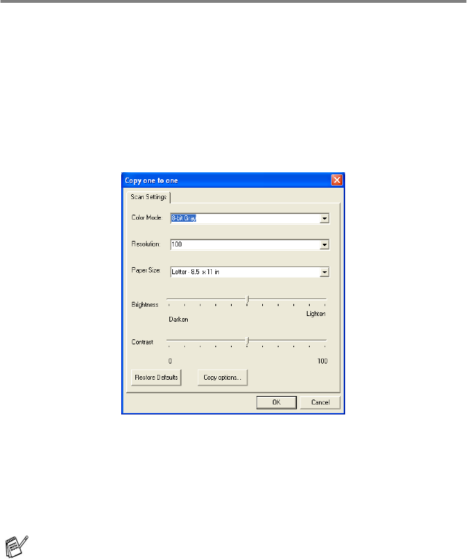 resolution, paper size, brightness and contrast settings to be used.