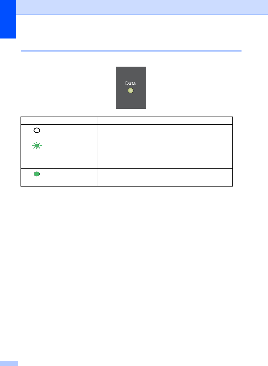 The Data LED (light emitting diode) will flash depending on the machine’s status.