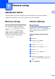 1 General setup 1 1 IMPORTANT NOTE 1 In this manual, the screen messages of the MFC-J625DW are used unless specified. Most of the illustrations in this User's Guide show the MFC-J625DW. Memory storage Your menu settings are stored permanently, and in the event of a power failure will not be lost. Temporary settings (for example, Overseas Mode) will be lost.