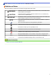 - • [Web] Press to connect the Brother machine to an Internet service. For more information, see the Web Connect Guide. Go to your model's Manuals page on the Brother Solutions Center at support.brother.com to download the guide. Warning icon The warning icon then press appears when there is an error or maintenance message; press to view it, and to return to Ready Mode.
