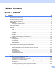 Table of Contents Section I 1 Windows® Printing 2 Using the Brother printer driver..................................................................................................................2 Features ....................................................................................................................................................2 Choosing the right type of paper................................................................................................................
